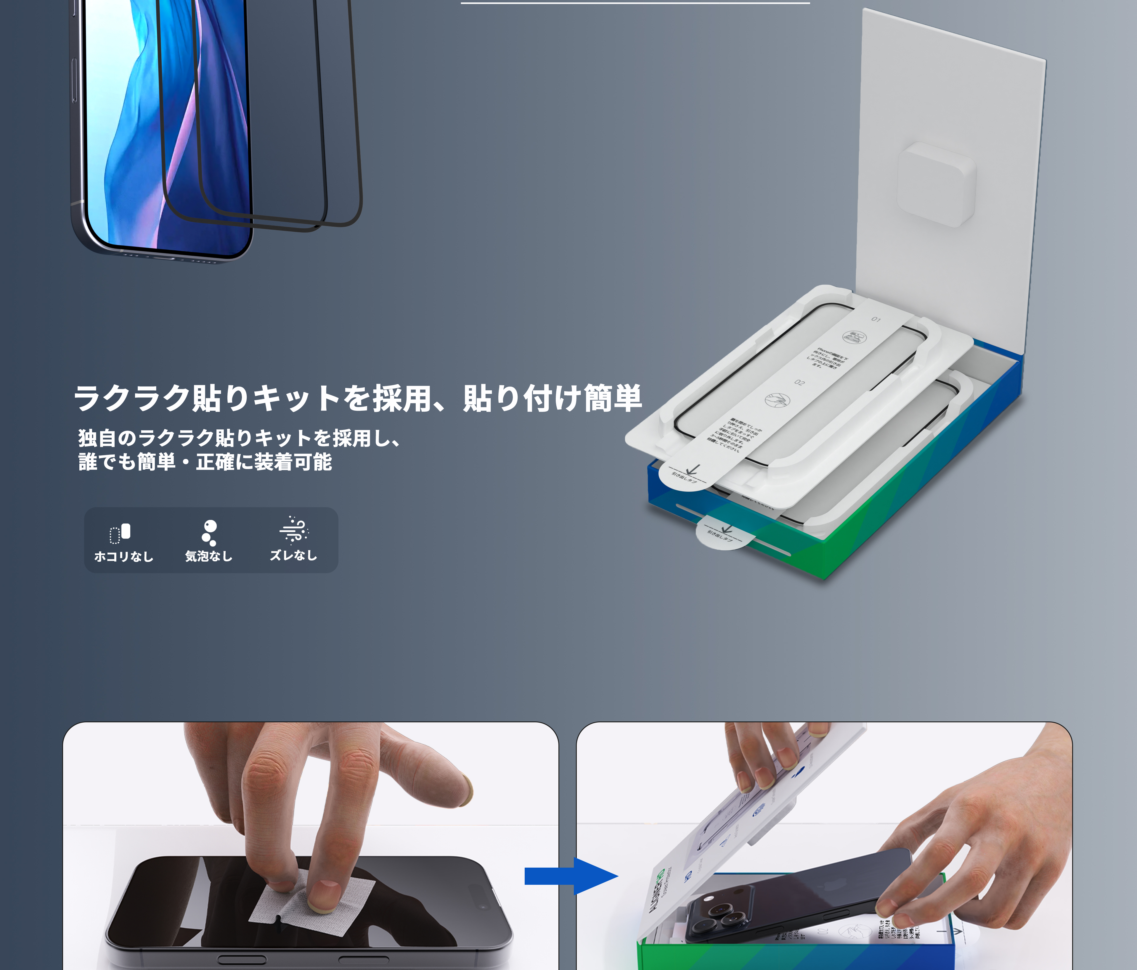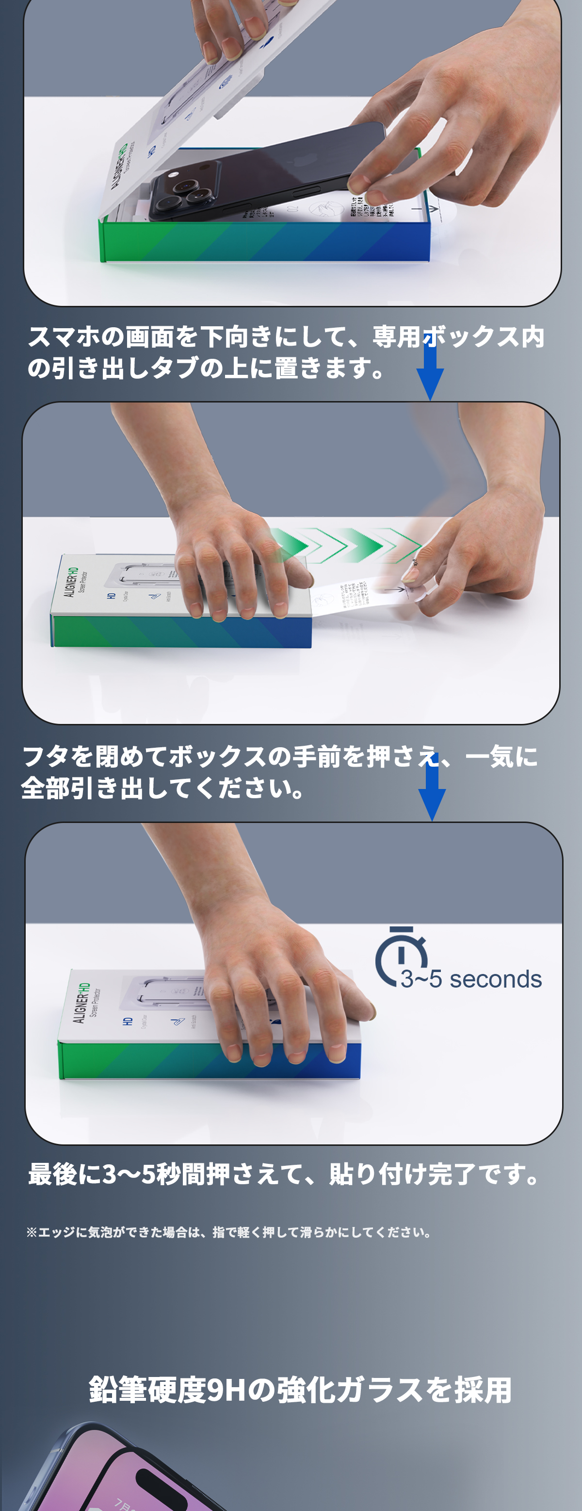専用BOXでプロ級の仕上がり!もう気泡やズレで失敗することはありません。